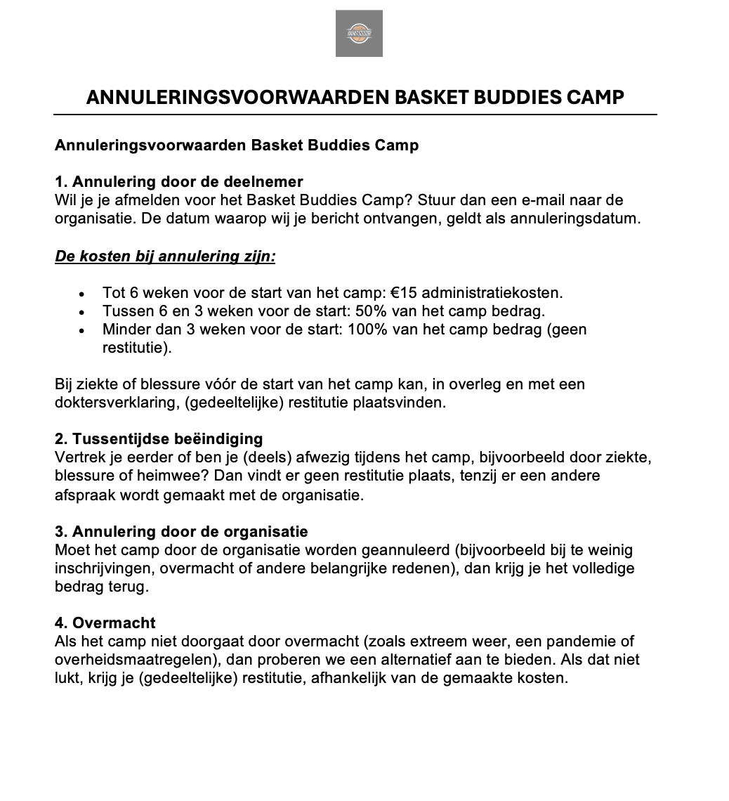 Informatie Basket Buddies Camp